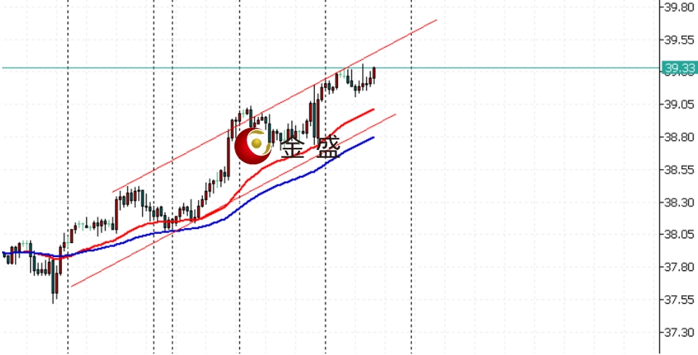 前一交易日行情继续刷新新高测试39.40美元附近,亚欧盘震荡修正整理,从K线形态上看,行情仅从破位39美元后行情以震荡逼空模式进行修正上行测试39.40美元附近,K线形态以缩量上行,在结构上行情呈现了有弱势修正的迹象,从通道上看,行情保持震荡上行趋势,K线围绕趋势通道的中轴线进行运行,目前价格报价39.30美元附近,从EMA技术指标上看,价格恒定在EMA技术短线指标的支撑方向进行上行,但是,上行回踩的方向回撤距离较远,目前K线排列的价格维持在上破前高点修正的突破位置修正,所以综合上述结构上来看,趋向修正下行更适宜。