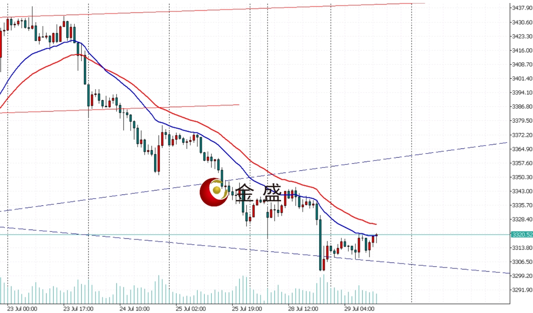 现货黄金周二(7月29日)亚欧盘时段低位震荡,行情先上行测试3320附近,后震荡下行测试中枢支撑位置3308附近,随后行情震荡上行测试3321,现在报价3319附近,行情基本上保持在大阴之下的修正,金价的震荡下行不仅受到美欧达成贸易协议的直接影响,也与美元指数的强劲反弹、全球风险偏好的回暖以及市场对美联储利率政策的期待密切相关。与此同时,中美贸易谈判的进展、特朗普对俄罗斯及中东局势的强硬表态,以及地缘政治的持续紧张,仍为黄金市场的未来走势增添了更多不确定性。从今日开始,行情将逐步进入数据以及基本面时代,注意好风险控制。