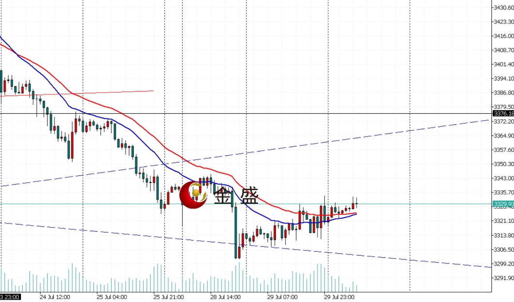 周二(7月29日)现货黄金走势震荡反弹,盘中最高触及3334附近,最终收报3326.35,涨幅约0.36%。这一反弹行情发生在自行情3440附近下跌至3302美元附近(7月9日以来最低点)之后,显示出市场情绪的快速切换。这种剧烈波动背后,是多重关键因素的角力:美联储利率决议在即、中美贸易谈判进入关键阶段、全球避险情绪起伏不定。周三(7月30日)亚市早盘,现货黄金窄幅震荡,目前交投于3332美元附近。