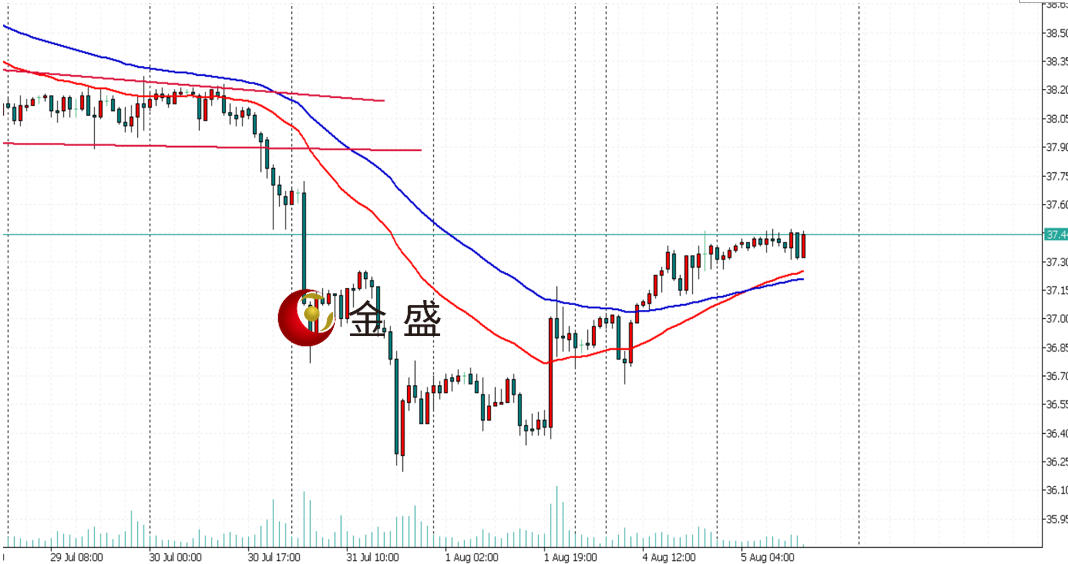 上方阻力:37.80-38.00 38.40-38.60 39.10