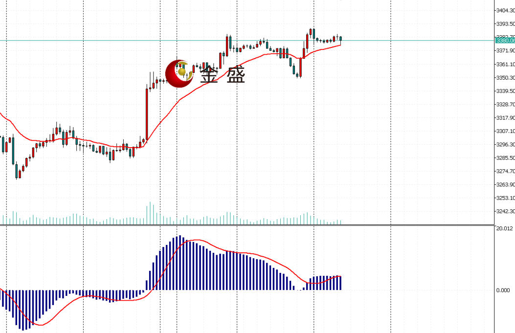 从黄金1小时图形,行情在周二美盘上演V型反转,一度上行至3390附近,从K线图形上看,行情以大阳线上行破位测试下方分界3350/3348支撑位附近,结构上看,K线延续震荡挤压形态,从EMA技术指标上看,目前价格运行EMA之上,EMA技术指标反平行,有回撤或等待EMA的趋势,从趋势线上看,以大阳刺穿,表明行情修正动能足够,从MACD技术指标上看,行情在放量之后并未有效的进行再次释放,而选择缩量结构结束冲击,综上所述,今日行情建议高抛低吸。