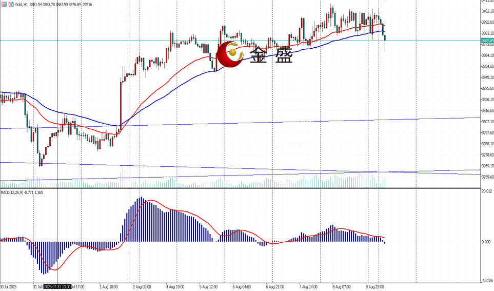 上周五(8月8日)亚市早盘,现货金价一度触及3408.71的上周高点,美盘白宫宣布不会实施金条关税后,金价仅短暂测试3380美元支撑位,便迅速反弹回3400美元边缘,并在周末前继续维持这一水平,收报3397.13美元附近。周一(8月11日)亚盘开盘,行情小幅高开触及3405附近进行下行回落破3380/3378关键位置,触及3368附近,现在报价3375附近,随着宏观面的消退,谨防黄金进行下行修正。