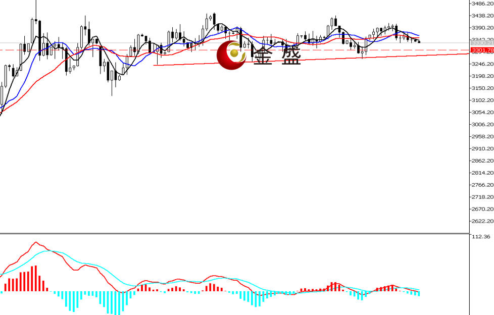 前一个交易日,早盘时段,随着美指的连阴调整,黄金依托3330美元一带震荡上行,并创当日高点3348.52美元。欧美盘时段,行情波动率下降,多空围绕3340美元一带盘整,最终收十字星。均线系统收敛走平,运行在价格上方形成阻碍。MACD指标快慢线零轴一带现死叉,做空的动能增强。黄金周线阴包阳,日图呈现空方炮结构,均线收敛在3350美元一带形成压力。多周期信号均偏空头,后市偏向测试3300美元一带的支撑。