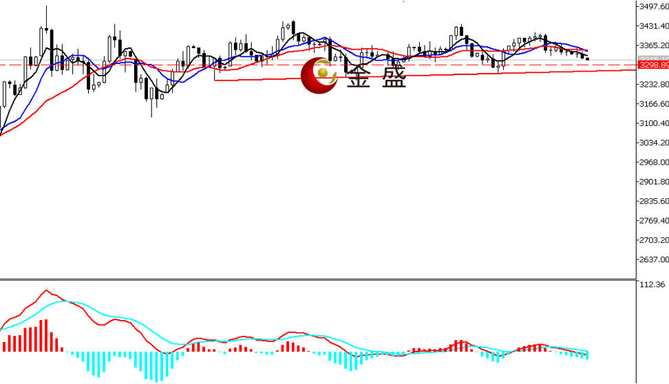 前一个交易日,白盘时段,黄金维持震荡格局,多头依托3330美元支撑有所反扑,午后创当日高点3345.05美元。晚盘时段,行情跌破区间下轨加速走低,盘中一小时下挫近二十美金,尾盘创日内低点3314.9美元,最终收阴线。均线系统收敛向下拐头,运行在价格上方形成阻碍。MACD指标快慢线零轴一带现死叉,做空的动能增强。黄金承压均线延续下行,价格跌破近期盘整结构,短期下行空间打开。下方关注3300美元一带的K线反应。