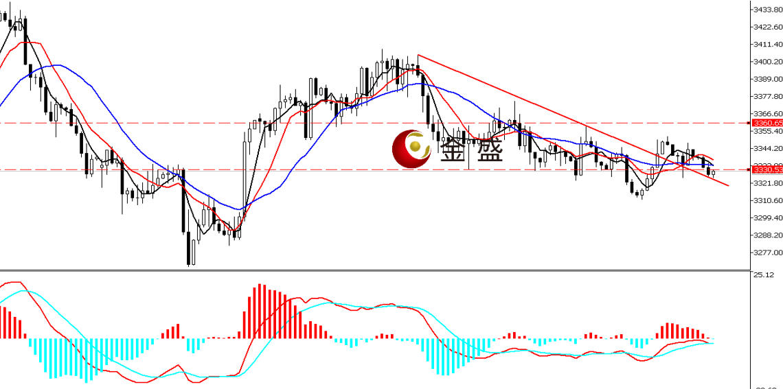 现货黄金周五(8月22日)开市于3338.59美元/盎司。亚欧盘时段,美指延续上涨刷新周内新高,指数来到周线布林带中轨附近。黄金震荡偏调整,价格运行在昨日的K线内,午后跌破3330美元关口。截止目前,金价最高3340.47美元/盎司,最低3325.3美元/盎司。黄金自3400美元关口开始的调整还在延续,但价格突破下行趋势线,空头力度暂时有所减缓。行情可能形成新的震荡区间。昨日价格虚破3330美元一带有反抽,今天再次向下刺破,多头持续性或不佳。短期关注3330一带的得失,一旦有效失守,则行情将震荡偏空。晚间美联储主席鲍威尔将发表讲话,黄金波动或加剧,注意控制交易风险。
