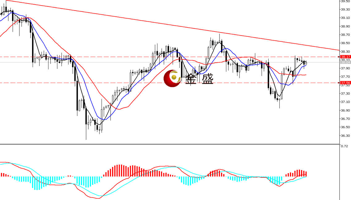 上方阻力: 38.2—38.4     38.6     38.8—39