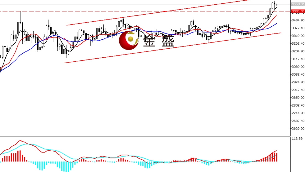 前一个交易日,早盘时段,黄金开市即创当日高点3563.99美元,9点后出现一波快速下杀,价格最低至3511.4美元。午后行情有所反弹。美盘时段,小非农数据利好,金价承压3560美元一带横盘整理,最终收长下影的阴星。均线系统多头排列,价格回踩五周期均线。MACD指标快慢线零轴附近现金叉,做多的动能为主。昨日黄金出现主动性调整,日图连阳被终结。相比之前的七连阳,昨日回撤的空间有限,即快速调整并未引发恐慌性抛售。行情空头势能偏弱,短期看高位盘整。等待今晚非农的指引。