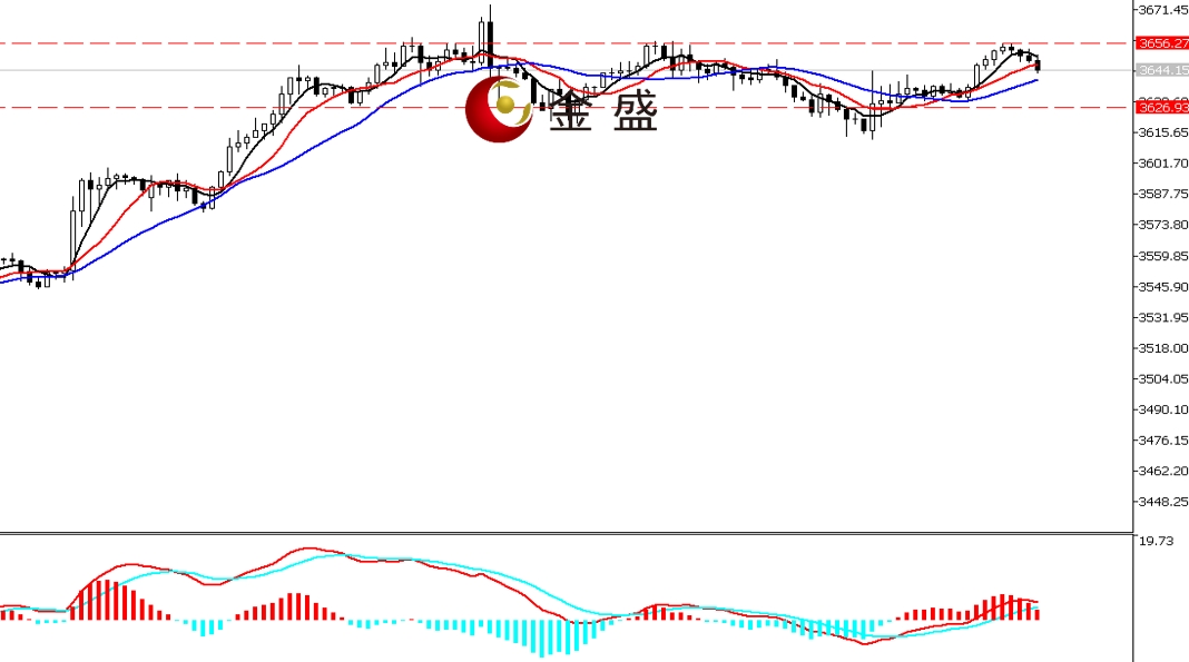 现货黄金周五(9月12日)开市于3633.82美元/盎司。亚盘时段,美指依托昨日低点弱势整理,日内波动二十个点左右。黄金区间内震荡上行,午后回吐部分涨幅。截止目前,金价最高3656.41美元/盎司,最低3630.5美元/盎司。黄金上涨趋势不变,价格延续3625—3655的区间整理。昨日MACD指标的顶背离基本完成修复,但价格并未有效跌震荡区间,可见行情震荡偏强。周内连续两次向下假破位,可见行情下行不畅,后市或尝试向上打破结构。