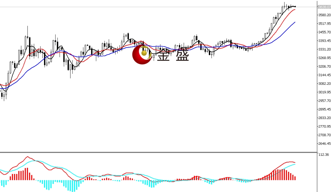 前一个交易日,早盘时段,黄金依托3630美元关口持续上行,午后创当日高点3656.41美元,此处正好是近期盘整结构的上轨。晚盘时段,行情波动收窄,多空围绕不足二十美金的区间震荡,最终收小阳星。均线系统多头排列,价格回落五周期均线。MACD指标快慢线零轴附近现金叉,做多的动能为主减弱。昨日。黄金延续高位横盘,价格围绕五周期均线震荡。走势属于单边上行后的技术性休整,但盘中调整幅度有限,可见空头力度不足。操作上调整做多为主。