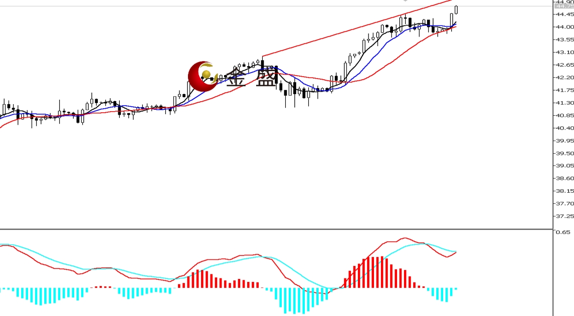 前一个交易日,白银表现较为平淡,多空围绕44美元关口震荡,且波动空间相比周二明显收窄,日图再收小K线。今天午后行情再度大涨,价格逼近45美元大关。四小时周期,均线系统收敛走平,运行在价格下方形成支撑。MACD指标快慢线零轴上方现死叉,做空的动能减弱。白银上涨趋势不变,行情围绕43.6—44.5区间盘整两日,均收十字星线。今天尝试向上打破结构,短期关注44.5美元一带的真假突破,一旦有效站稳,则后市偏向继续上涨。