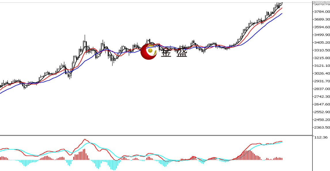 前一个交易日,白盘时段,黄金先跌后涨走V字型,价格创当日低点3838美元,午后收复早盘全部跌幅。晚盘时段,非农就业数据缺席,黄金延续涨势,价格重回前高3890美元一带。日图收阳线。均线系统多头排列,运行在价格下方形成支撑。MACD指标快慢线零轴上方现金叉,做多的动能为主。黄金上行趋势不变,上周五阳线反包前两日的十字星,即上周高位震荡偏强。周线形成七连阳,且K线实体再度增大,意味有新增资金入场,后市看4000美元一带的压力。操作上调整做多为主。