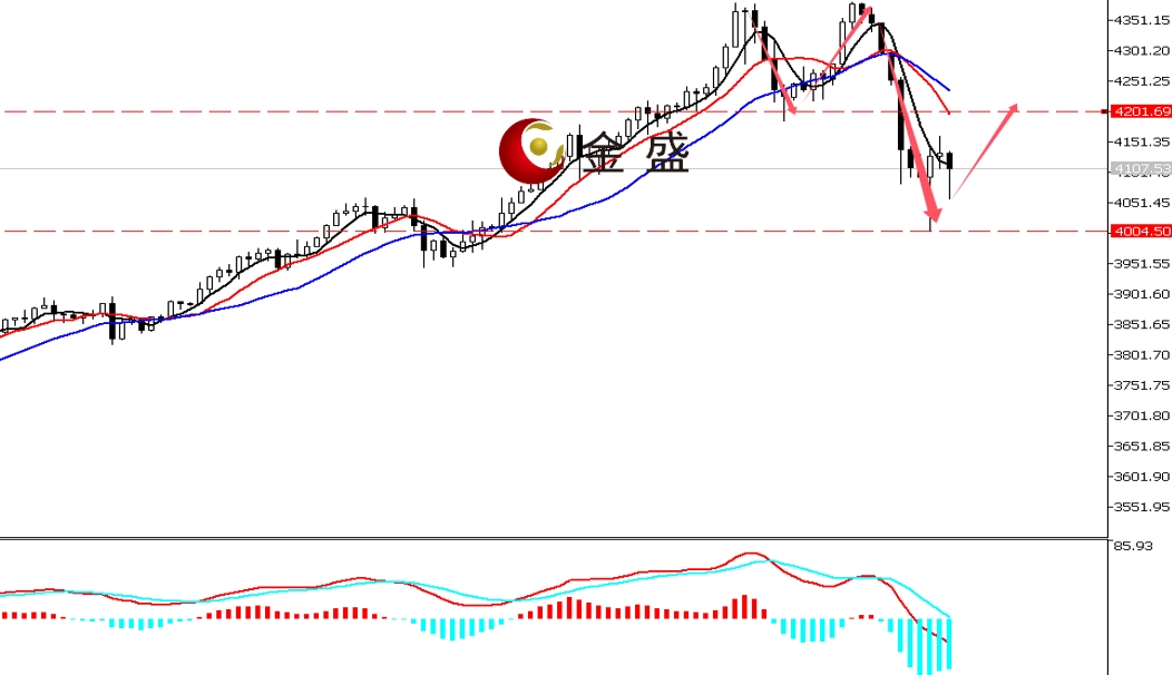 前一个交易日,市场对贸易协议乐观的情绪打压避险需求,美指延续反弹再收阳线。黄金承压前高持续下挫,盘中跌破多个关口,日内一度下挫逾6%,尾盘有所反弹,最终收跌5.31%。今天白盘行情先跌后涨走V字型,价格回踩4000美元关口有强势反扑。四小时周期,均线系统收敛向下拐头,对价格反弹形成压制。MACD指标快慢线零轴上方现死叉,做空的动能有增强。黄金确认双顶成型,颈线位于4200美元一带,此处形成后市反弹的压力区。近两日黄金大幅回撤,盘中回吐本月大部分涨幅,可见空头力度很强。后市偏向进入高位的宽幅休整,4000美元一带形成强支撑区。操作上高抛低吸。