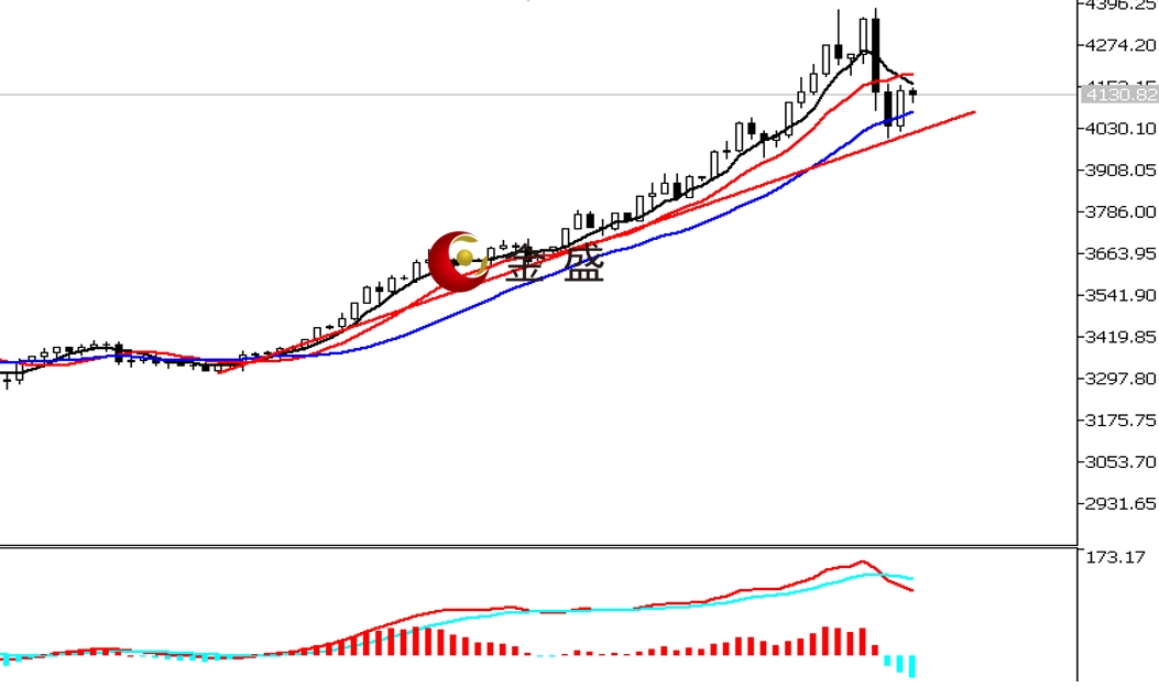 前一个交易日,白盘时段,黄金短暂调整至日内低点4065.94美元止跌转涨,午后突破4100美元关口。晚盘时段,行情延续上行,创当日高点4154.31美元,尾盘回吐部分涨幅。最终收阳线。均线系统不断收敛,价格回踩布林带中轨。MACD指标快慢线零轴上方现死叉,做空的动能为主,指标有调整需要。昨日黄金震荡上行收阳,但K线运行在周三的高低点内,近两日形成孕线结构。走势进入休整蓄势阶段,短期关注周三高点4160美元一带的真假破位,操作上高抛低吸。