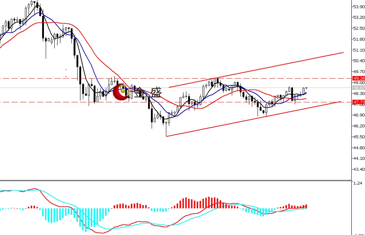 上方阻力:49—49.3 49.6—49.8 50