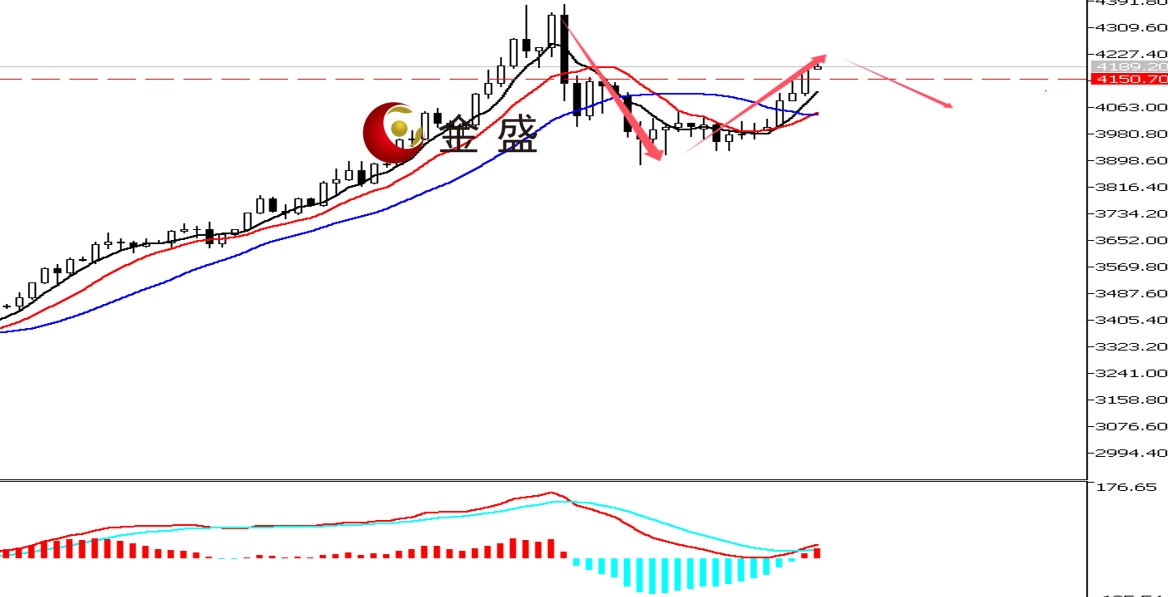 前一个交易日,白盘时段,黄金承压4150美元一带震荡下行,午后创当日低点4098.78美元止跌回升。晚盘时段,一则美联储鹰派官员即将退休的消息,推动金价一小时拉升五十美金,盘中一度打破4200美元关口,创当日高点4211.49美元,最终收中阳线。均线系统收敛向上拐头,运行在价格下方形成支撑。MACD指标快慢线零轴附近现金叉,做多的动能为主。行情进入二次探顶的阶段,昨日再度大幅拉升,价格已经来到预期目标位4200美元一带。后市关注此关口上方的反转信号,操作上等待博空的机会。