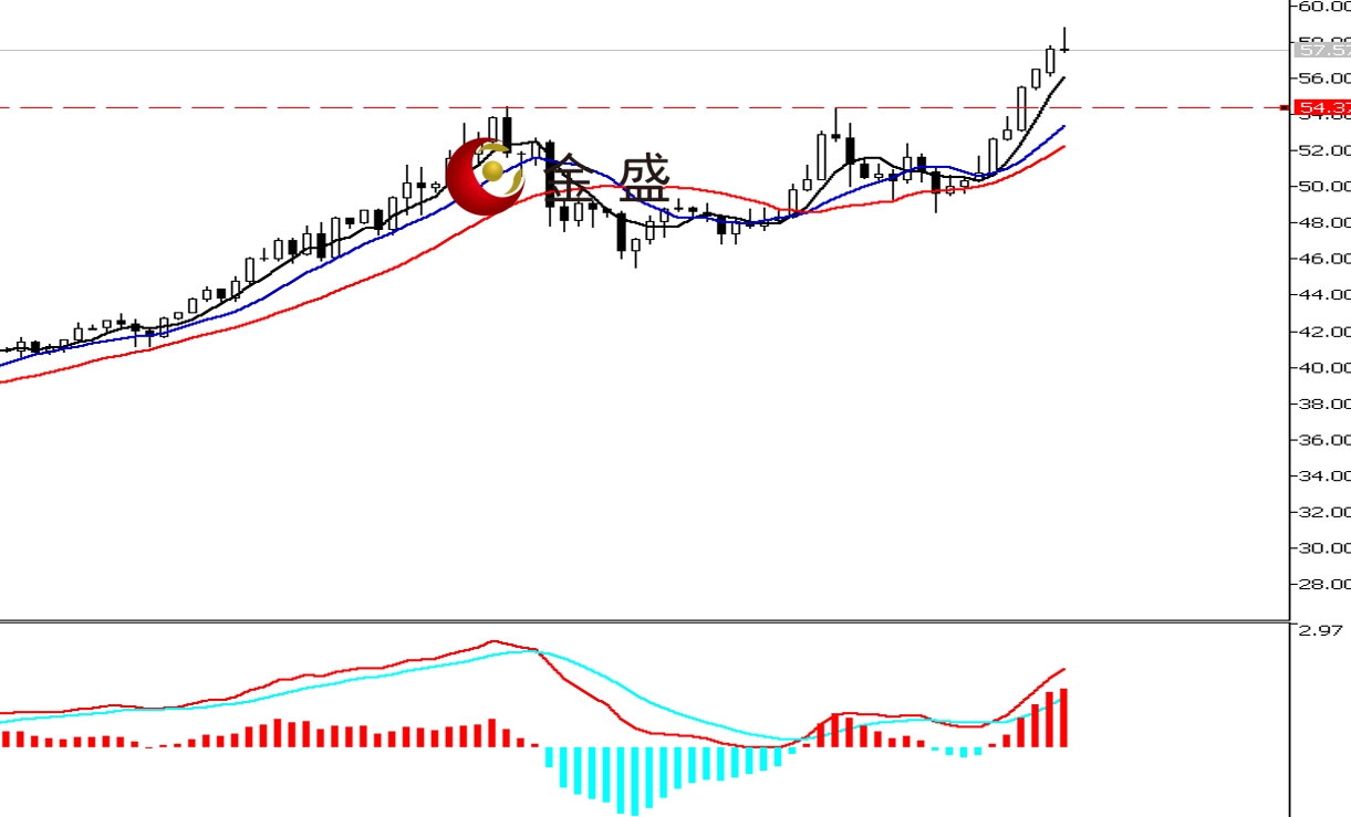 上方阻力:58.6—58.8 59—59.2  59.5