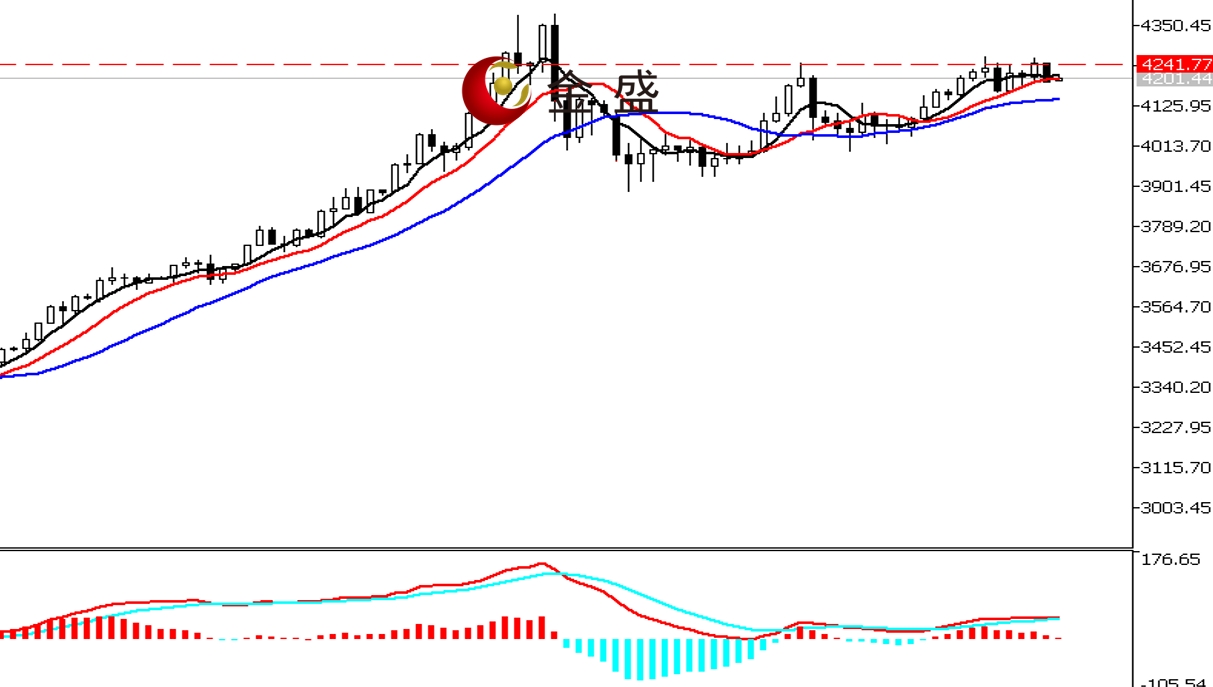 前一个交易日,早盘时段,黄金先有所调整,价格创当日低点4194.72美元,随后出现一波连阳反扑。欧美盘时段,行情波动加剧,价格先涨后跌走尖顶结构,盘中最高至4259.03美元,尾盘有所跳水,最终周线收小阴星。均线系统逐渐走平,运行在价格下方形成支撑。MACD指标快慢线零轴上方运行,做多的动能减弱。上周黄金围绕4200美元关口上下四十美金震荡为主。日图U型结构的水平口未能有效突破,K线上多次出现阴包阳结构,强化4250美元一带的压力位,短期关注下方4180美元一带的支撑是否有效。