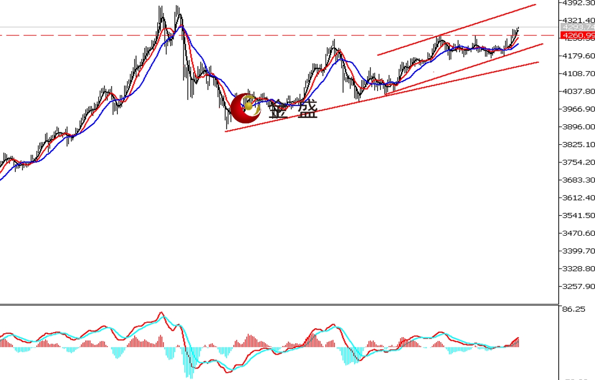 现货黄金周五(12月12日)开市于4255.69美元/盎司。亚欧盘时段,美指依托98美元关口略有反抽,但上行高度有限。黄金坚守4260美元关口横盘数小时,午后延续涨势突破4300美元大关。截止目前,金价最高4295.15美元/盎司,最低4250.06美元/盎司。昨日黄金大涨逾1%,今天无明显回落,确认震荡区间上轨4260美元一带有效突破,后市的上行空间打开。价格自3900美元一带开始的上涨趋势延续,且行情进入加速上行阶段,操作上调整做多为主。