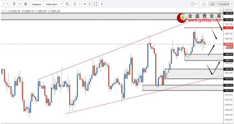 现货黄金周二(11月28日)亚盘和欧盘基本维持小幅横盘震荡走势,美盘振幅加大,多头上攻冲高后又回落,总体跌宕起伏。下方需要关注1289-1286、1283-1279和1276-1274的支撑区域,可以考虑做多。上方关注的区域是1303-1306的阻力区域,首次触及做空,同时需要关注1300一线,未必是阻力支撑,但是一旦上破会增加市场多头信心。