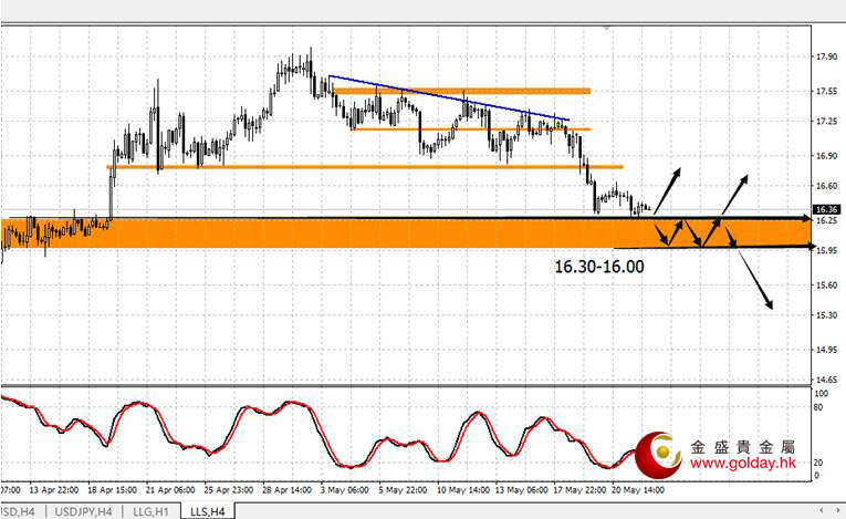国际现货白银周一(5月23日)亚盘和欧盘盘初触低16.30美元/盎司后小幅震荡上行,最高点触及16.39美元/盎司一线,后受到欧元区数据表现不佳影响,再度向下触及16.30美元/盎司,晚间小幅反弹,但反弹力度较弱,下方暂时关注16.30美元/盎司的支撑表现。下破之后不开空,选择在16整数关口附近找机会做多。激进的依旧可以16.30试多单,但一下破第一时间离场。