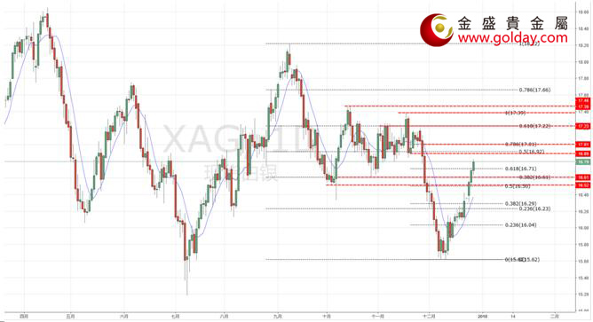 现货白银周四(12月28日)亚盘和欧盘持续上行,轻松突破上方16.71附近阻力,目前交投于16.80附近。银价连续四个交易日强势续涨,上方17.00关口岌岌可危,若被多头攻克,继续上行目标指向17.22和17.39-46区间,回调初步支撑上移至12.60-50区间,续跌指向16.30-28和16.15-10区间。