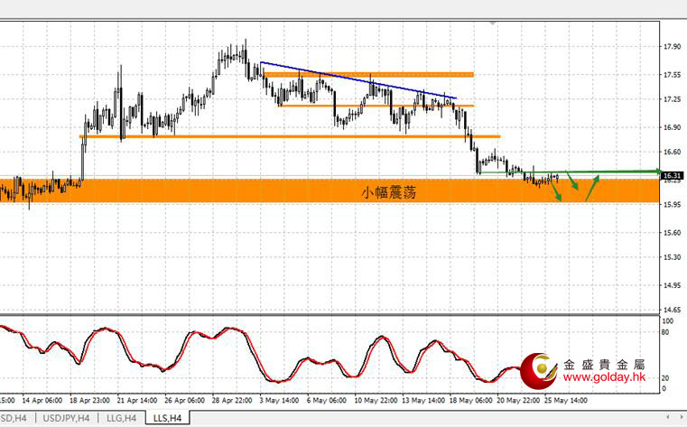 国际现货白银周三(5月25日)亚盘和欧盘维持小幅震荡走势,反抽16.30美元/盎司一线没有上破,依旧保持在16.30-16.00的震荡区间,晚间美盘基本维持震荡走势,稍微有所回升。但是依旧没有打破低点高点不断降低的震荡下行格局。目前仍以弱势震荡格局来看。如果亚盘和欧盘有反抽的高点可以进场空单,震荡则观望,今日涨跌很大程度取决于晚间的数据方向。