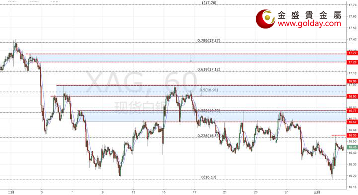 现货白银周四(3月2日)亚盘和欧盘区间震荡,保持在16.50下方运行。银价隔夜同样出现剧烈波动,整体行情偏空,但当前有小幅反弹调整空间,上方初步阻力在隔夜高点附近的16.55一线,16.67-77、16.90-17.00和17.20-27区间阻力依然有效。下行初步支撑在隔夜低点附近的16.25-17区间,16.06-00、15.85-80和15.70-62区间支撑依然有效,首次触及可做多。